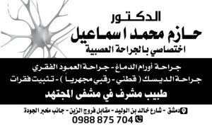 | عيادة الجراحة العصبية التخصصية د. أحمد بيره جكلي - أحمد بيره جكلي | حلب | الكرة الارضيه | |